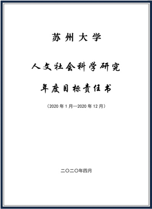 会上,高峰院长代表学院签署了《苏州大学人文社会科学研究年度目标责任书(2020年1月-2020年12月)》。