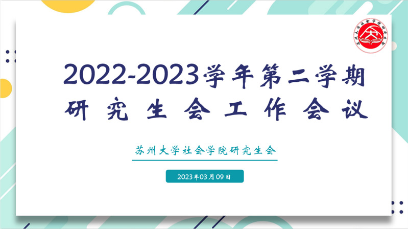 2023年3月9日下午13:30,苏州大学社会学院研究生会2022-2023学年第二学期工作会议顺利召开。