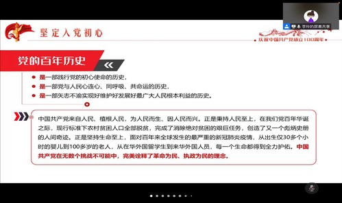 李玲老师先阐述了为什么中国共产党能成为长期稳定执政的世界第一大党,带领人民创造一个又一个奇迹,并教育大家要铭记百年历史,坚守初心使命,大力弘扬以爱国主义为核心的民族精神和以改革创新为核心的时代精神。接着,李老师结合社会学院的实际说明了党员发展流程,分为五个阶段:申请入党阶段,入党积极分子的确定和培养教育阶段,发展对象的确定和考察阶段,预备党员的接收阶段,预备党员的教育、考察和转正阶段。除此之外,李老师还提出了大学生入党的基本要求,比如学业成绩优秀、有学生工作经历、积极参与志愿活动、积极参加党支部活动等。