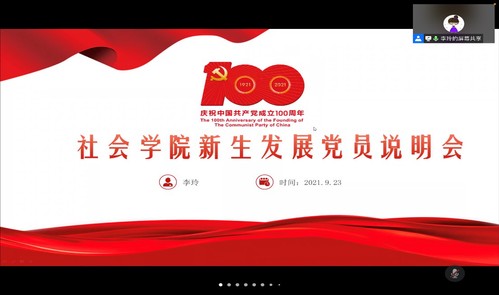 2021年9月23日下午两点,社会学院2021级本科新生入学教育之党团关系专题讲座以腾讯会议的形式于线上举办。本次讲座旨在使新生们了解更多的党团知识,并熟悉入党流程。这次讲座邀请到了张明老师和李玲老师为大家进行详细讲解。