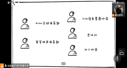 接着由I-Life信息素养协会的社长金莹婕从社团简介、活动和未来规划三个方面进行介绍。该协会的宗旨是关注信息社会,创造知识价值,提示信息素养,引领知识生活。社团围绕图书情报与档案管理专业开展参观图书馆、学习经验分享会、专业分流讲座等活动。第四个是由王誉童从社团简介、活动和工作总结三个角度介绍的杏坛社。杏坛社是以提高历史学(师范)本科生的师范技能,加强学科教学的实践性为目的而创立的师范生自律互助社团,有教资经验分享会、经典名句大赛等特色活动。最后由肖人杰从活动开展、宣传报道和组织建构三个方面对社会工作协会进行介绍。社工协会有短期志愿活动,也有长期社会服务,比如青盾计划、青春健康同伴教育等等。
