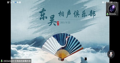 在李同学介绍完社联之后,由社会学院五大社团的社长为大家介绍各个社团。首先是由潘美怡从社团简介、社团部门、社团日常和社团特色四个方面介绍Kicker足球社。该社成立于2005年,有竞赛部、宣传部和仲裁部三个部门,平日里会组织线下看球、训练比赛、日常团建等活动。第二个是东吴相声俱乐部,由王雨辰从专业、品牌、特色和规范四个角度为大家介绍。东吴相声社创始人是江苏省曲艺家协会会员林雨,社团每学年会开设迎新专场、相声大赛、毕业专场等活动,极大丰富了大学生的课外文化生活,同时传播了优秀的校园传统文化。