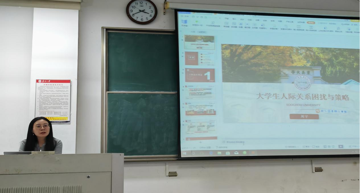 2023年5月17日15时40分,苏州大学社会学院大学生人际关系困扰与策略讲座于文科综合楼1001-1501举行。本次活动由苏州大学大学生心理健康教育研究中心专职教师周宇老师主讲,社会学院大一至大三本科生参与。
