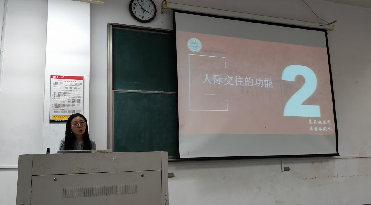 最后,周宇老师从人际关系困扰入手,介绍了人际交往研究、大学生人际交往五大困扰和处理方法,给予同学们恰当的建议。周老师认为拥有良好的人际关系有益于自身,良好的人际关系是使人身心健康、事业成功、人生幸福的需要。老师指出在与人交往的过程中,同学们应当多关注对方的优点,并提出六个“学会”,即学会有效沟通、学会乐于分享、学会直面冲突、学会控制情绪、学会接纳欣赏、学会感恩包容。