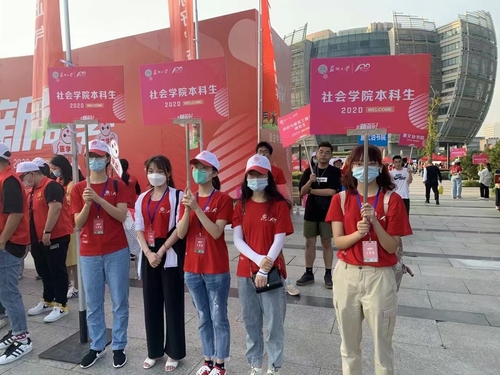2020年9月13日,社会学院2020级本科生迎新活动在苏州大学独墅湖校区如期展开。全体志愿者佩戴工作证、穿戴统一服装、佩戴好口罩,整整齐齐地迎接新生的到来。