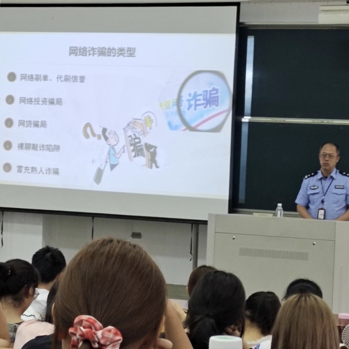 这场关乎同学们最切身利益的讲座在热烈的掌声中拉开帷幕。会议伊始,永安桥派出所的民警就讲到了近年来肆虐猖狂的非法校园贷,他为同学们讲解了各类不同的常见欺骗花样和套路,以及分享了发生在同学们身边的案例。接着,他继续介绍了如网络刷单、冒充公检法进行电话诈骗、网络购物诈骗等常见的诈骗方式,并列举了预防电信网络诈骗六不要准则,令新生们印象和记忆更加深刻,而因不堪贷款重负而轻生的举例又引发了同学们的惋惜和思考。讲座在严肃而不乏轻松的氛围中继续进行,力求达到使同学们树理性消费观念,学会防校园贷款陷阱的效果,台下的新生们紧跟着派出所民警的思路认真记忆。