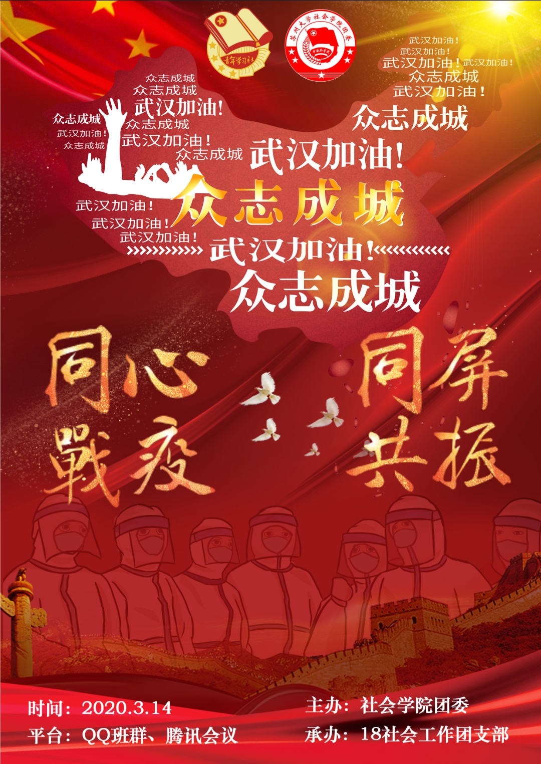 2020年3月14日下午一点半,2018级社会工作团支部举办的“同心战疫,同屏共振”主题团日活动在QQ班群、腾讯会议同步进行。18级社会工作班全体同学参加了本次活动。