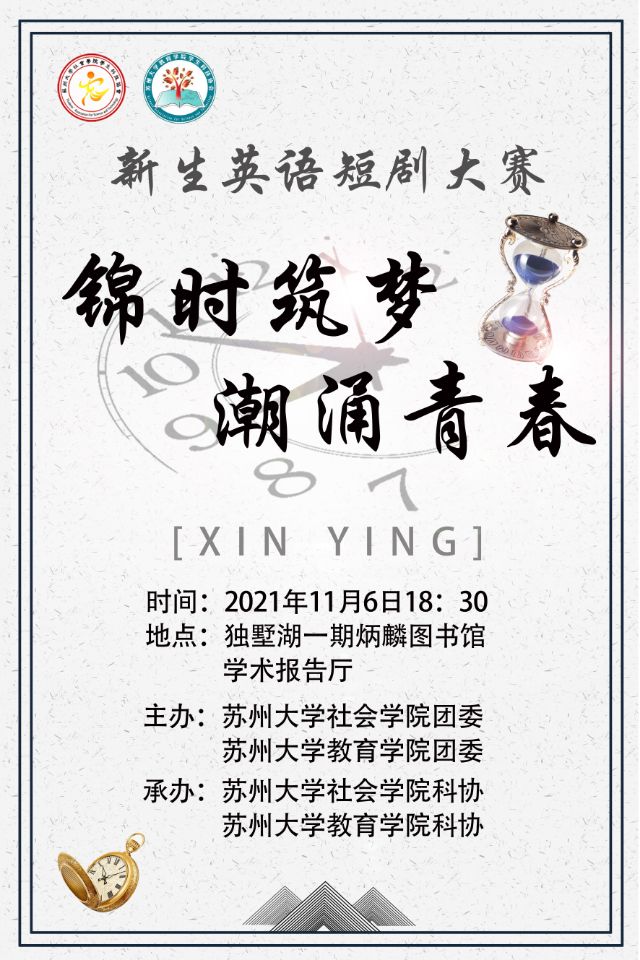 社会学院:苏州大学2021新生英语短剧大赛——“锦时筑梦,潮涌青春”