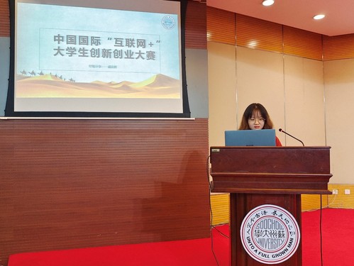 2021年11月3日晚6点,由社会学院主办的苏州大学2021年中国国际“互联网+”大学生创新创业大赛经验分享会(独墅湖校区专场)在炳麟图书馆学校报告厅进行。出席本次活动的领导嘉宾有:社会学院学生工作办公室主任、2019级、2020级本科生辅导员马竞飞老师,社会学院团委书记、2018级、2021级本科生辅导员袁羽琮老师。苏州大学社会学院学生参加了本次活动。分享会邀请到了第六届中国“互联网+”大学生创新创业大赛国赛、省赛获奖项目成员戚欣然同学和刘安同学来分享他们的参赛经验和心得。