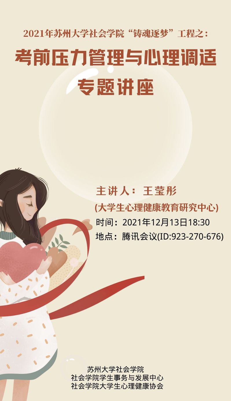 2021苏州大学社会学院“铸魂筑梦”工程之:考前压力管理与心理调适专题讲座