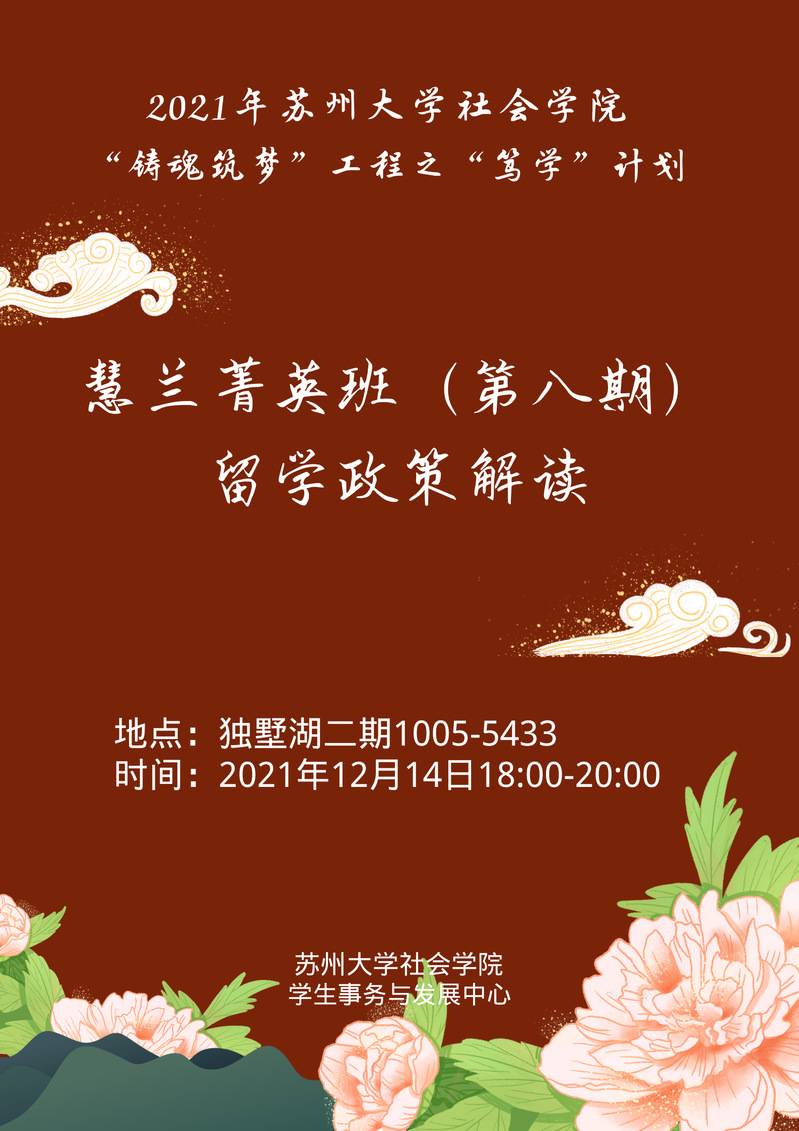 2021年苏州大学社会学院“铸魂筑梦”工程之“笃学”计划:蕙兰菁英班(第八期)留学政策解读