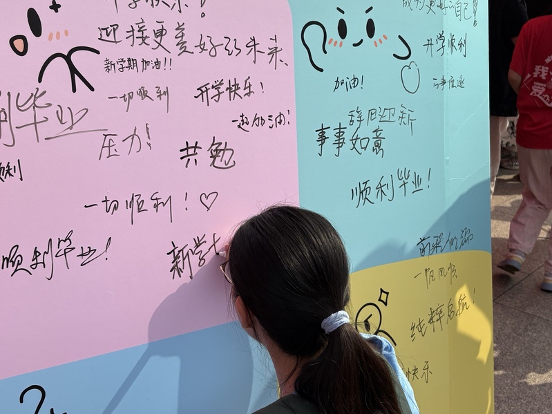 社院新生们有序完成报到流程,并在工作人员引导下,与家长一同在学院专属设计的KT板和手举牌前拍照留念。“看这里,笑一下,三二一”,镜头定格下他们与苏大社院初次相遇的美好瞬间。
