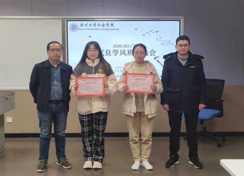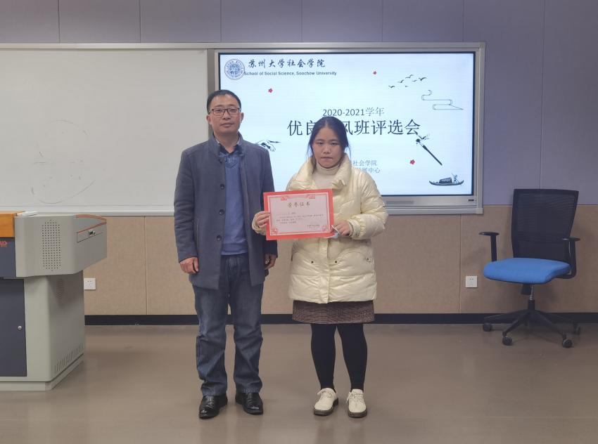 2021年12月22日下午13:30,社会学院优良学风班评选在独墅湖校区南区1005-5433举办。由学院党委副书记、副院长郝珺老师和院学工办主任马竞飞老师现场指导;旅游管理系主任、教授黄泰老师,档案与电子政务系副教授高俊宽老师,历史系傅亮老师,社会学与社会工作系刘为地老师,辅导员孙帅老师作为此次活动评委。
