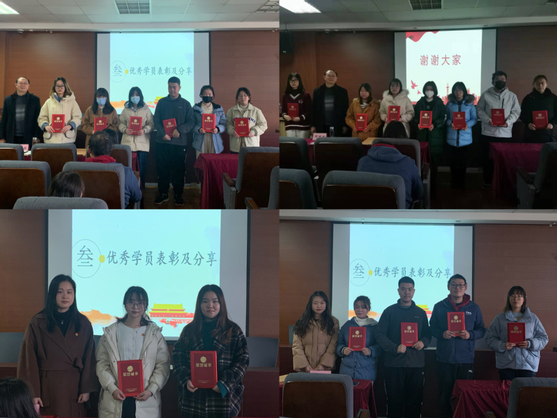 随后,邓国林书记为第45期预备党员培训班、第66期党的基本知识培训班以及第12期积极分子培训班优秀学员颁发荣誉证书,李玲老师为双百双联优秀志愿者颁发荣誉证书,李晓梅同学为党建书屋优秀学员颁发荣誉证书。