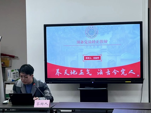 各位答辩评委围绕党的二十大报告、全国两会精神、《中国共产党纪律处分条例》、习近平总书记关于教育重要论述等理论知识以及六位预备党员的汇报内容进行提问。预备党员根据自身实际情况,结合理论学习和实践成果逐一作答。最后,答辩评委对预备党员在预备期间的表现予以肯定,进行现场投票表决。
