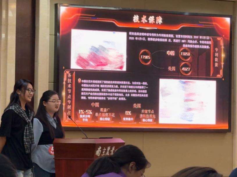 该比赛由江苏省人文与社会计算中心、江苏省科学技术情报学会联合主办,由南京大学、南京农业大学、南京信息工程大学共同发起。参赛成员由来自南京大学、南京农业大学、南京理工大学、苏州大学、南京信息工程大学、南京中医药大学、扬州大学等7所高校的125支队伍、375名学生构成,经过初赛和决赛笔试环节,我院2023级信息资源管理专业本科生3支队伍进入决赛现场。本次决赛主题是“美国加关税背景下我国产业竞争情报分析与应对策略”,我院学生分别面向集成电路、生物医药与高端医疗器械、新能源汽车这三项战略性新兴产业开展竞争情报分析并进行答辩,最终取得优异成绩。