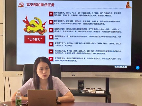 学院专职组织员李玲老师开展党支部党务工作专题培训。李老师围绕党支部的性质和基本任务、基层组织建设的内容和要求、党支部日常实务工作等方面进行详细讲解,强调学生党支部应当加强思想政治引领,筑牢学生理想信念根基,抓好“三会一课”制度,开展好主题党日活动,落实好党员发展工作,切实完成党支部的各项任务,有效发挥基层党组织的战斗堡垒作用和党员的先锋模范作用。