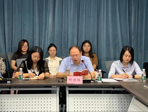 邓国林书记首先致辞并给新生党员讲授《学习党章,尊崇党章,在新征程上创造新的业绩和荣光》专题党课。邓书记指出,党章对党的性质、宗旨、指导思想、奋斗纲领和重大方针政策、对党员权利和义务等内容作出了明确规定,对这些重要内容,学生党员要全面了解和掌握。随后,邓书记带领与会党员重点学习了党章中党员的八项权利与八项义务,希望新生党员自觉做到用党章规范自己的一言一行,达到学以立德、学以增智、学以笃行的效果,进而成为学习和遵守党章的模范。最后,邓书记对学生在校期间的政治安全、财产安全、生命安全特别是意识形态安全等方面进行了强调。