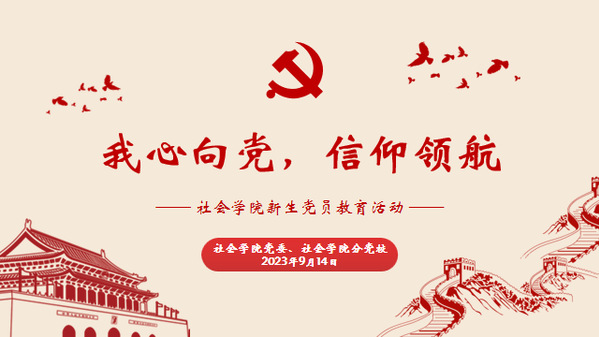 为深入学习贯彻习近平新时代中国特色社会主义思想,加强新生党员思想政治教育,提高党性修养,增强组织观念和纪律意识,激励新生党员厚植爱党爱国爱社会主义的情感,社会学院党委组织开展新“心”向党——2023年新生党员教育系列活动,本次系列活动由学院分党校承办。
