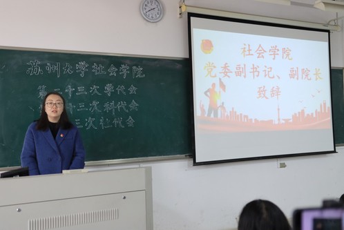 半小时后,三代会正式会议召开。苏州大学社会学院党委副书记、副院长郝珺老师,苏州大学社会学院团委书记、2018级、2021级辅导员袁羽琮老师莅临本次大会。