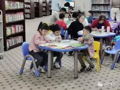 适逢周末,下午两点,青少年阅览室里已经有很多小朋友捧着书津津有味地读着。年龄尚小的孩子在家长的陪伴下好奇地比划,稍大些的孩子大多一人静静的捧着绘本细细地读,也有的小朋友在休闲区围坐一圈时不时小声地探讨。