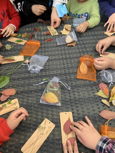 接着,志愿者们带领小朋友们走进了美丽的盘山景区,一起收集落叶,把小朋友们分为两队,画树叶,一起玩落叶拼图,互相猜对方拼了什么,还将收集到的落叶围成一个大圈,小朋友们一起踩落叶,一起欢笑一起乐。中途,由于户外蚊虫较多,有小朋友受到叮咬,志愿者及时拿出提前准备的药膏, 有效地缓解了小朋友的不适。并且,志愿者将提前准备好的饮用矿泉水发放给大家,补充水分。