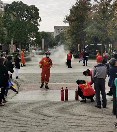 活动先是由消防大队人员面向唯亭社区群众与幼儿园的小朋友们演示讲解各种消防用具使用方法。