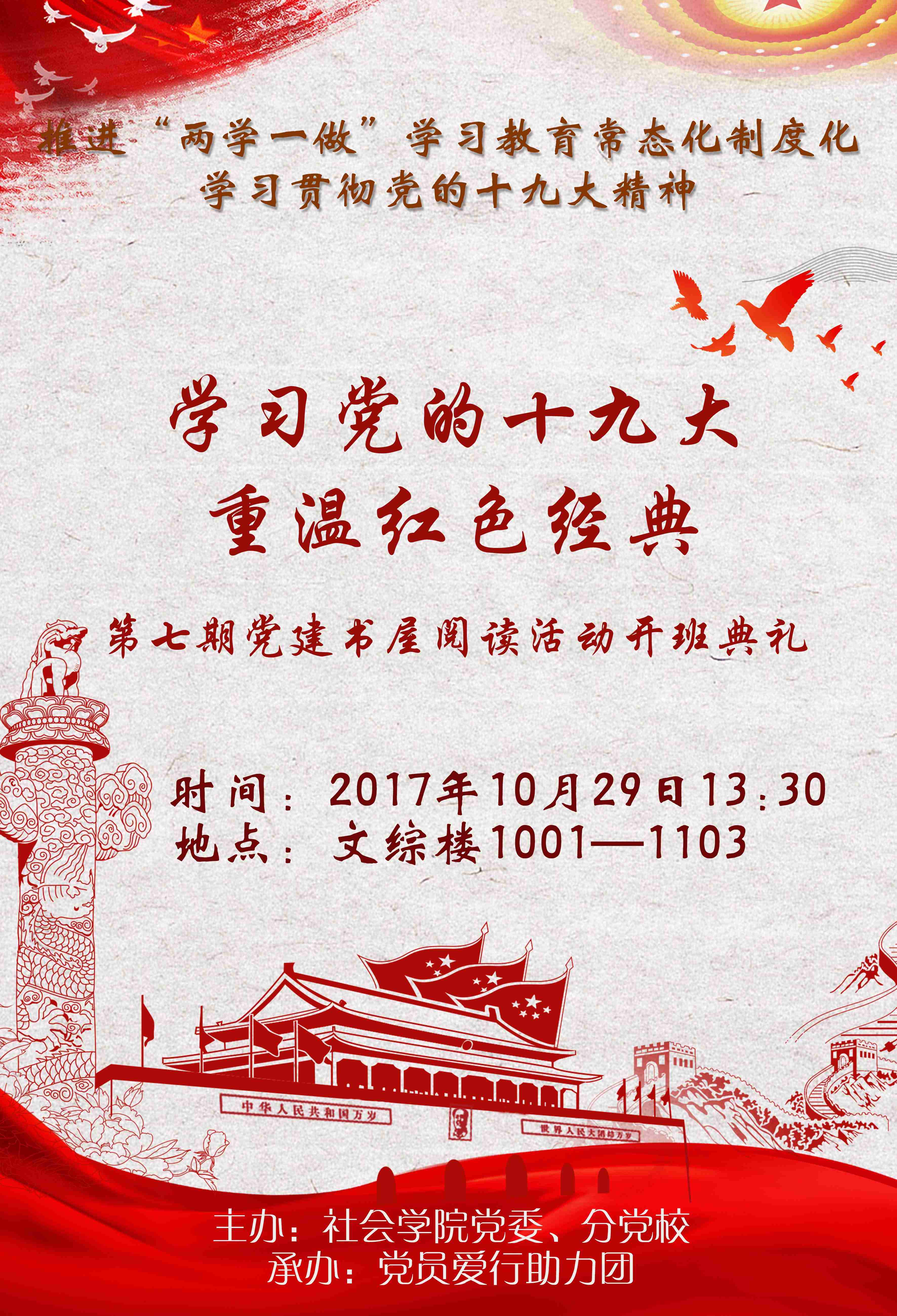 学习党的十九大 重温红色经典——第七期党建书屋阅读活动开班典礼(海报)