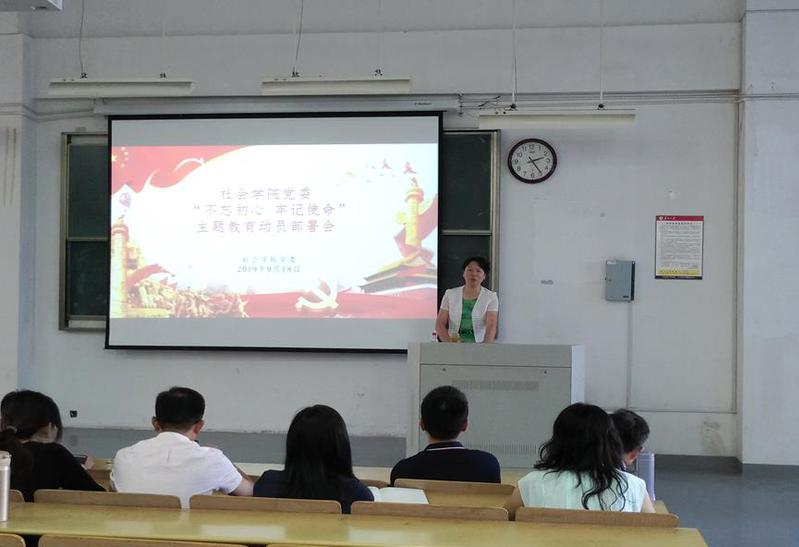9月18日下午,苏州大学社会学院“不忘初心、牢记使命”主题教育动员部署会在独墅湖校区1001-1201举行。社会学院党委书记邓国林作动员讲话,苏州大学“不忘初心、牢记使命”主题教育巡回指导组第四组副组长李伟文作指导讲话。主题教育巡回指导组第四组成员刘遥、社会学院党政领导班子成员,全体教职工党员以及学生党员参加了会议。