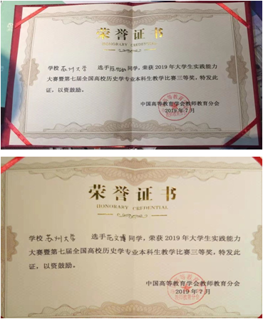 我院学子作为综合性大学中的师范专业学生,参赛前尚未进入中学实习,未能积累中学实践经验,在这样高水平的大赛中能取得较优异的成绩,反映出我院历史学师范专业办学质量的不断提升。同时,我们也应以此为契机,加强学生师范技能训练,进一步提升历史学师范专业学生的教育教学能力。