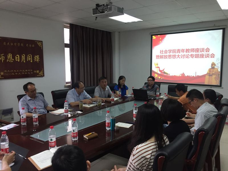 为深入贯彻落实《中共苏州大学委员会开展解放思想大讨论活动实施方案》精神,社会学院于7月6日在学院5511会议室召开了青年教师座谈会暨解放思想大讨论专题座谈会。会议由学院党委书记邓国林主持,院长王卫平、副院长郑庚、青年教师参加了座谈会。
