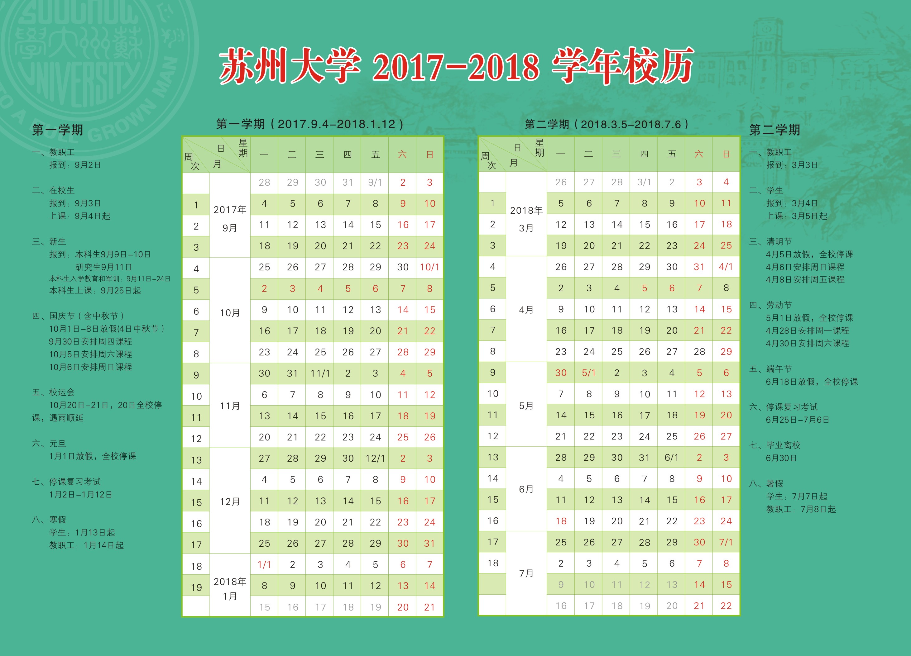 苏州大学2017-2018学年校历