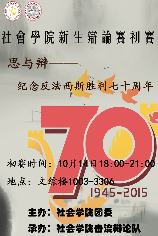 社会学院: 思与辩 纪念反法西斯战争胜利七十周年 社会学院新生辩论赛初赛