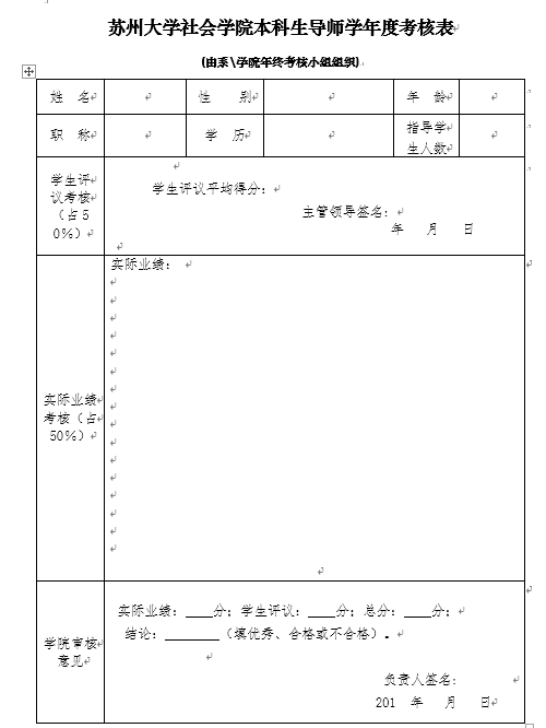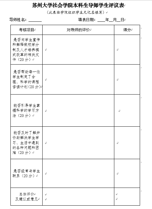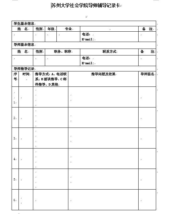 苏州大学社会学院导师辅导记录卡、考核表