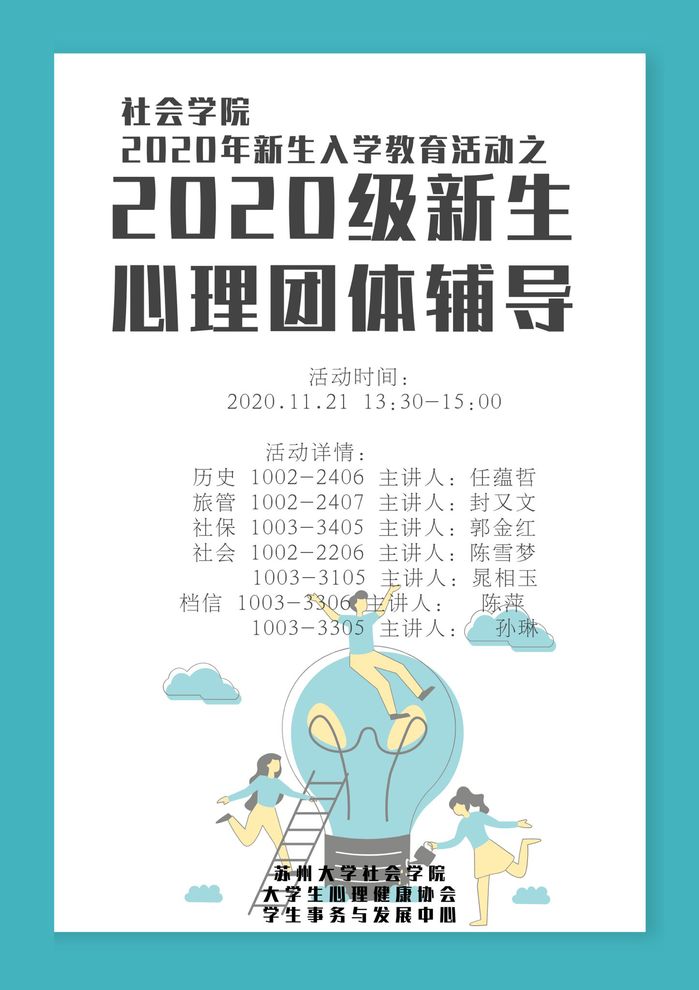 社会学院2020年新生入学教育活动之新生心理团体辅导(海报)