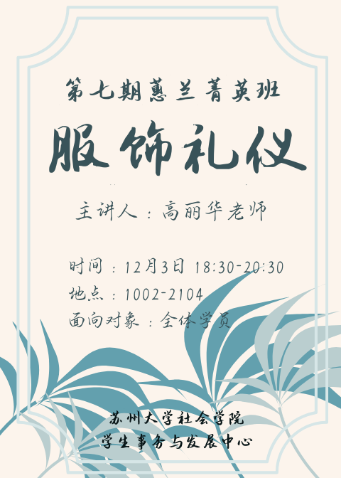 社会学院第七期蕙兰菁英班服饰礼仪讲座(海报)