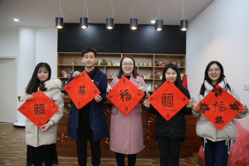 游园会设置了5个环节,意为“迎福”、“品福”、“猜福”、“抢福”、“套福”五福俱全。同学们可以在游园会中亲手写下属于自己的“福”字,品尝冬酿酒,体会猜灯谜、抢椅子、套玩偶的乐趣。