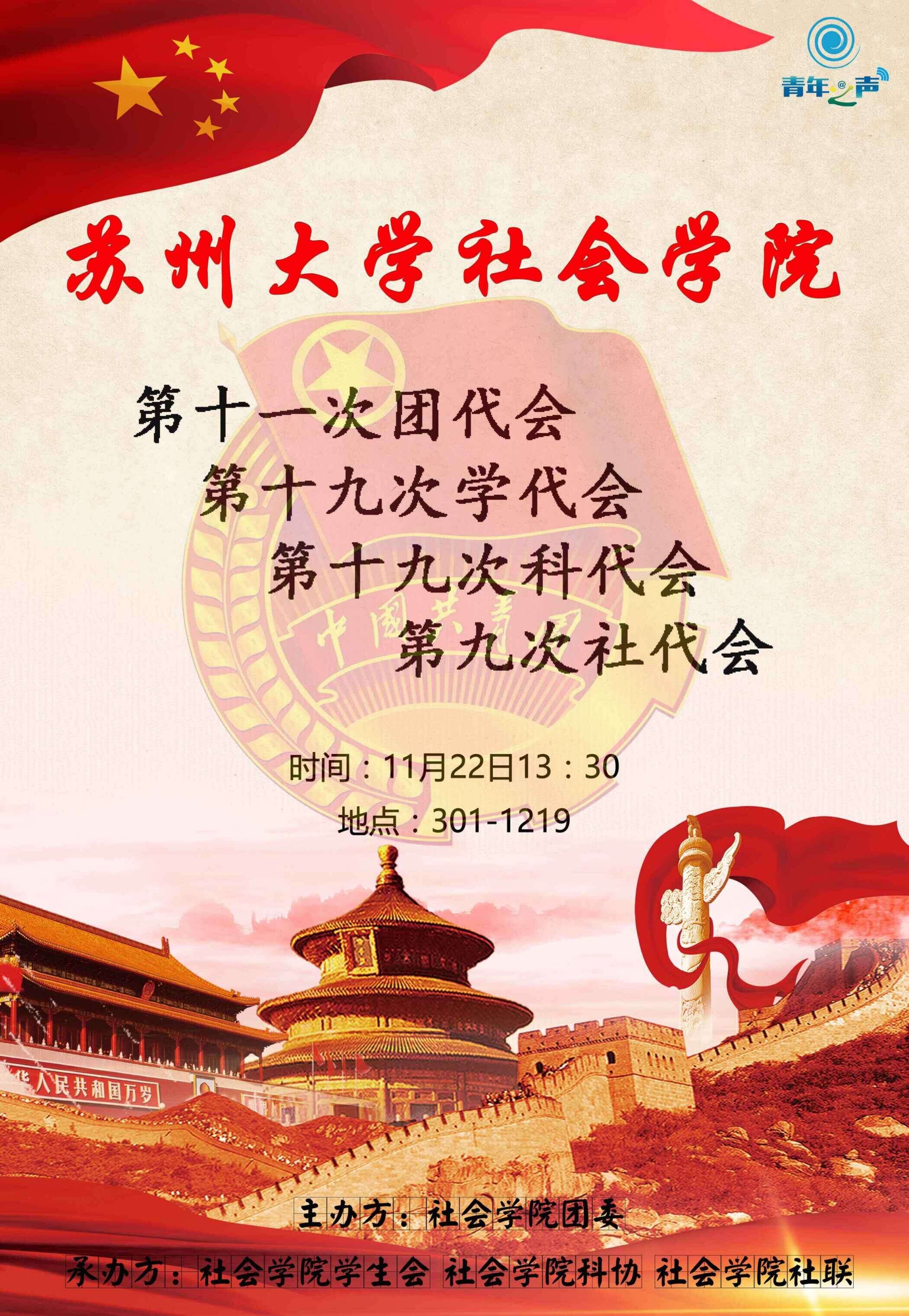 四代会:苏州大学社会学院第十一次团代会、第十九次学代会、第十九次科代会、第九次社代会(海报)