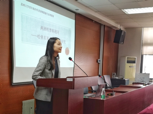 2019年11月6日下午两点,苏州大学社会学院两洲吹梦料相同——哈佛东亚系与中国史研究讲座于独墅湖校区二期1005-5448教室举行。出席本次活动的是:青年海归学者讲师张程娟老师,社会学院团委书记、2019级新生辅导员郝珺老师,社会学院团委副书记、2017级与2018级本科生辅导员袁羽琮老师以及2018级、2019级历史班全体同学。本次讲座的主题是“两洲吹梦料相同——哈佛东亚系与中国史研究”。