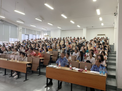 随后芈科长向同学们教授了如何预防火灾、火灾发生时如何使用灭火器、如何逃生以及防范溺水、盗窃、诈骗的知识,并提出要提高关于远离毒品珍爱生命、识别和远离传销组织、拒绝校园贷通过合法金融途径融资、抵制邪教组织侵害等方面的安全意识。最后芈科长强调同学们应积极配合国家扫黑除恶专项整治项目,抵制校园欺凌等不良现象。台上讲得动情,台下听得入胜,芈科长面面俱到的耐心教导让同学们听来如沐春风,笑料不断的贴身举例更是以深入浅出的方式让同学们加深印象。