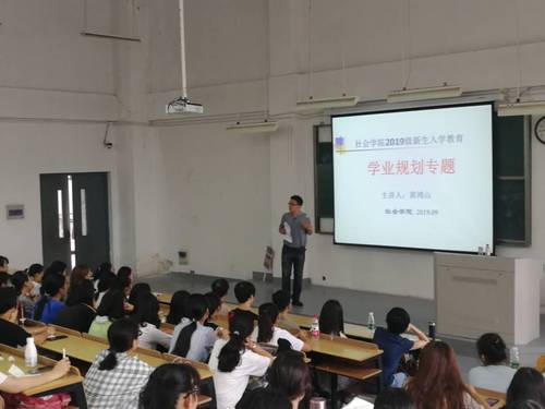 2019年9月9日上午九点半,苏州大学社会学院2019年赢在起跑线系列讲座之新生的学业规划专题讲座在独墅湖二期文科综合楼1001-1201教室举行。出席本次活动的领导嘉宾有:苏州大学社会学院副院长黄鸿山老师,苏州大学社会学院团委书记、2019级本科生辅导员郝珺老师。苏州大学社会学院2019级全体新生聆听了本次讲座。