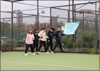 首先,参赛参赛的五支代表队进行了小组赛,时长为一个小时。每一队可自由选择挑战项目的顺序,比赛的结果采用点数记录,每完成一个项目则相应获得积分。比赛开始计时,五支队伍分别选择了不同的项目,同时开始挑战。历史班率先完成第一个挑战项目,在摸石过河项目中获得四点积分。社会班与社保班的同学也不甘示弱,两队都分别在各自的第一个项目中获得六点积分,档信班与旅管班分别在各自的第一个项目中获两点积分。