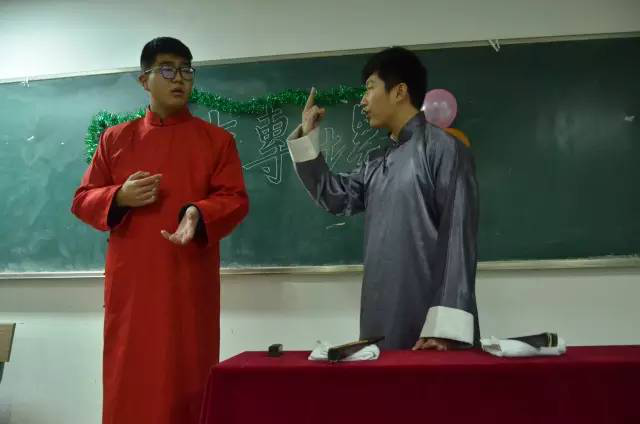 接着上场的是王习禹、曹浩宇。二人携手带来表演《学贯中西》。他们从学习生活中的一些趣事出发,运用英语、日语互相抬杠,进而延伸到外语学习的话题,引出许多笑点。