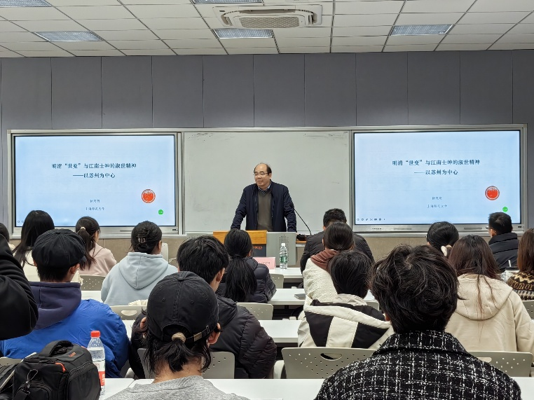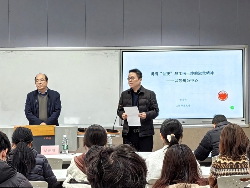 2025年11月24日下午,“明清‘世变’与江南士绅的淑世精神——以苏州为中心”校级素养公开课在独墅湖校区文综楼1005-5433顺利开讲。由上海师范大学人文学院教授、历史系主任、中国近现代史博士点负责人徐茂明教授主讲,社会学院院长黄鸿山教授主持。