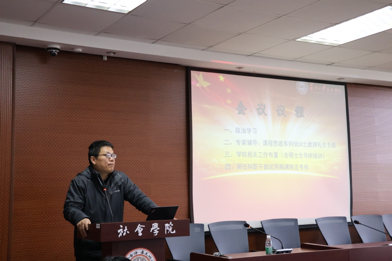 宋言奇对研究生工作进行强调,并开展2023年度硕士生导师培训,重点对研究生规范化培养进行了详细说明。