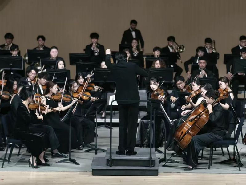 随后奏响的《F大调第八交响曲,作品93》风格灵动活泼,乐团以娴熟技艺演绎出各乐章的独特韵味,让现场气氛愈发轻松愉悦。压轴登场的《C大调三重协奏曲,作品56》由我校三位外籍教师联袂献艺,小提琴清亮悠扬、大提琴醇厚深沉、钢琴灵动婉转,三者配合默契无间,将乐曲的和谐层次与丰富内涵展现得淋漓尽致,演出结束后,全场响起经久不息的热烈掌声。