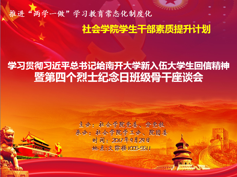 社会学院学生干部素质提升计划之学习习近平总书记给南开大学新入伍学生回信精神