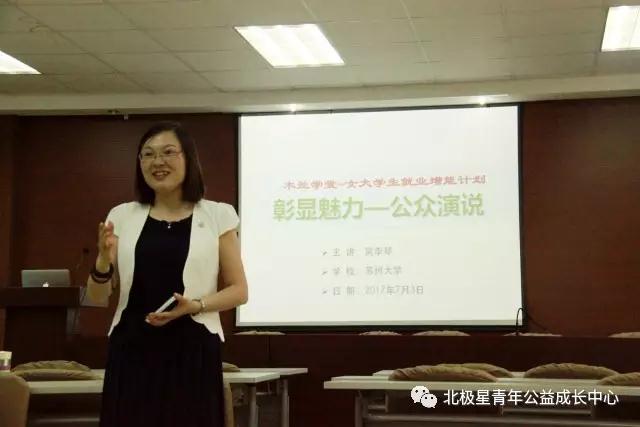 2017年7月3日,是新的一周的开始,一股热烈的风吹过独墅湖上方,在岸边卷起一小层波浪,有一些浪花溅入岸边斑驳的树影,烘托出一股热烈的气氛。上午九点,在独墅湖校区5448,乐说口才训练创始人吴李琴老师和木兰学堂的学员们已经就位,她们将在这里进行一场别具一格的女大学生公众演说培训课程。