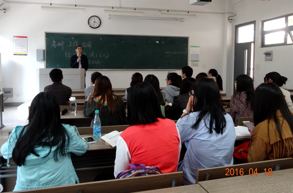 4月18日下午,社会学院2017届毕业生创就业系列之生涯规划指导讲座在独墅湖校区文综楼1002-2202室顺利举行。教务部部长周毅教授应邀做了一场生动而深刻的以“毕业去哪儿”为专题的讲座,2013级辅导员顾林枝、2012级优秀学生代表、13级档案与电子政务系各专业学生共同参加。