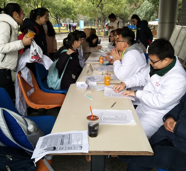很快,前来咨询的同学渐渐多了起来。坐诊同学们的耐心讲解以及通俗易懂的语言,帮助许多同学解开了心中的困惑。坐诊同学穿着白大褂,那认真专注的样子,真的颇有几分医生范儿啊!看着同学们面带愁容地来,心满意足地离开,每一个工作人员的心中都充满了欣喜。活动现场氛围的热烈,也吸引了路过行人的频频侧目。随着下课高峰的到来,现场氛围更加火爆,直至活动快要结束,仍然不断有同学前来咨询。
